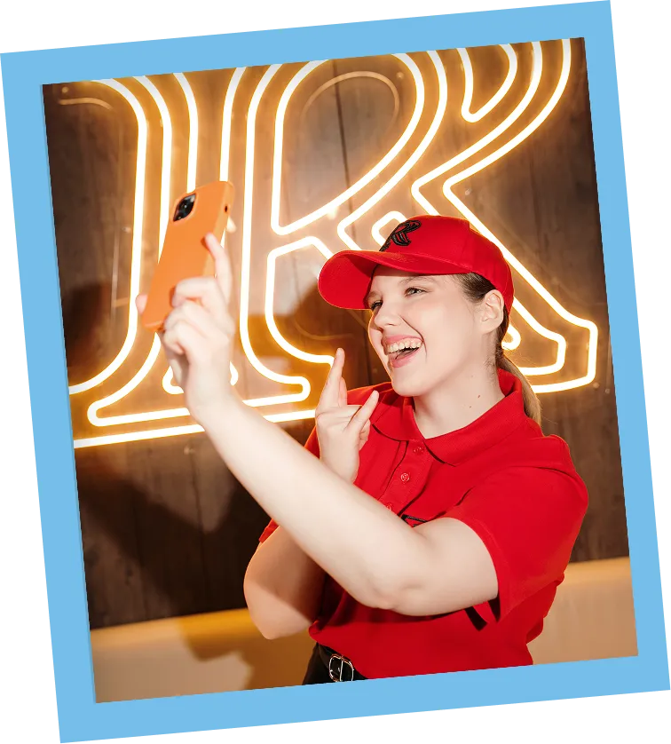 А ещё у нас бывает очень весело. На производстве стоит колонка и я часто включаю музыку: от моих любимых Lady Gaga и Ke$ha до нашего общего плейлиста, где может внезапно заиграть и Максим, и Бутырка, и Михаил Круг. Но ещё часто мы слушаем наше корпоративное радио с разговорами ведущих и песнями, которые подбираются специально для рабочего вайба. Я обожаю танцевать и моя главная цель, чтобы танцевали и пели все вокруг. Иногда я могу просто подбежать к ребятам на участке панировки и начать петь Lady Gaga, пытаясь научить их словам.